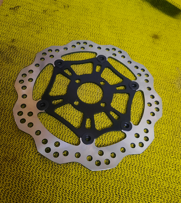 Accueil / Mobylette / Disque de frein 270mm Mbk 51xr Disque de frein 270mm Mbk 51xr159,90 € Disques avant Wave 270mm flottant 4 trous, épaisseur 4mm Pour Mbk 51 xr magnum (couleur frette centrale au choix) *Fabrication sur mesure à la commande, délais 2/3 semaines* couleur Choisir une optionNoirGrisRougeBleuBlancOrangeJauneEffacer quantité de Disque de frein 270mm Mbk 51xr Ajouter au panier UGS : amd062 Catégorie : Mobylette Informations complémentaires Informations complémentaires couleur Noir, Gris, Rouge, Bleu, Blanc, Orange, Jaune Produits similaires Mobylette Tés de fourche cnc Ebr Mbk 51 Tés de fourche taillé masse cnc Pour fourche EBR hydraulique 28mm Ce monte en lieu et place sur Mbk 51. fournis complet avec tés inférieur, tés supérieur, axe de colonne de direction, visserie + roulements. *Possède plusieurs taraudage sur le dessous de chaque tés, pour fixation bulle de phare ou support compteur. Mobylette Patte de déport radial Fourche Ebr 28mm Patte de déport pour Fourche EBR 28mm + disque 270mm. Permet le montage d’un étrier radial 4 pistons (Stage6, Voca, Rpm… entraxe 82mm) sur la fourche EBR (entraxe 60mm) accompagnée d’une roue avant 51 xr 4 trous. Mobylette Cloche acier Poulie Doppler er2 Mbk51 Cloche embrayage de rechange, pour Poulie Doppler er2 mbk 51. Entièrement cnc, en Acier. Intérieur cloche Ø127mm Montage en lieu et place de l’origine. Mobylette Bras oscillant alu Mbk 51 xr magnum Bras oscillant arrière en Aluminium pour MBK 51 Magnum Racing MR1 / XR NU60 / Rock Racing, avec pattes pour béquille latérale et repose pieds. Plus long de 5cm, Pour remplacer votre bras oscillant d’origine. Brut aluminium Tube rectangulaire Monté avec bague bronze Pour béquille origine *Livré avec tendeurs de chaine + axe de roue arrière Ø12mm