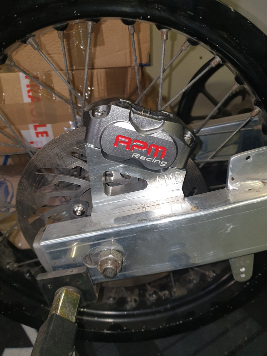 Patte de déport arrière radial, permet de mettre un étrier Radial 4 pistons (style Stage6, Voca, Rpm, …) sur bras oscillant aluminium drd.