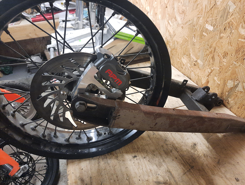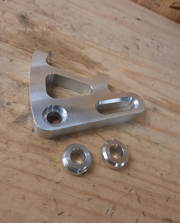 Patte de déport arrière radial, permet de mettre un étrier Radial 4 pistons (style Stage6, Voca, Rpm, …) sur bras oscillant Yamaha Dt.